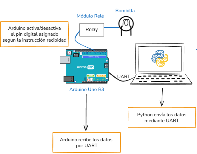 En esta etapa colocaremos a Arduino en modo escucha, listo para recibir por UART las instrucciones recibidas desde Python.